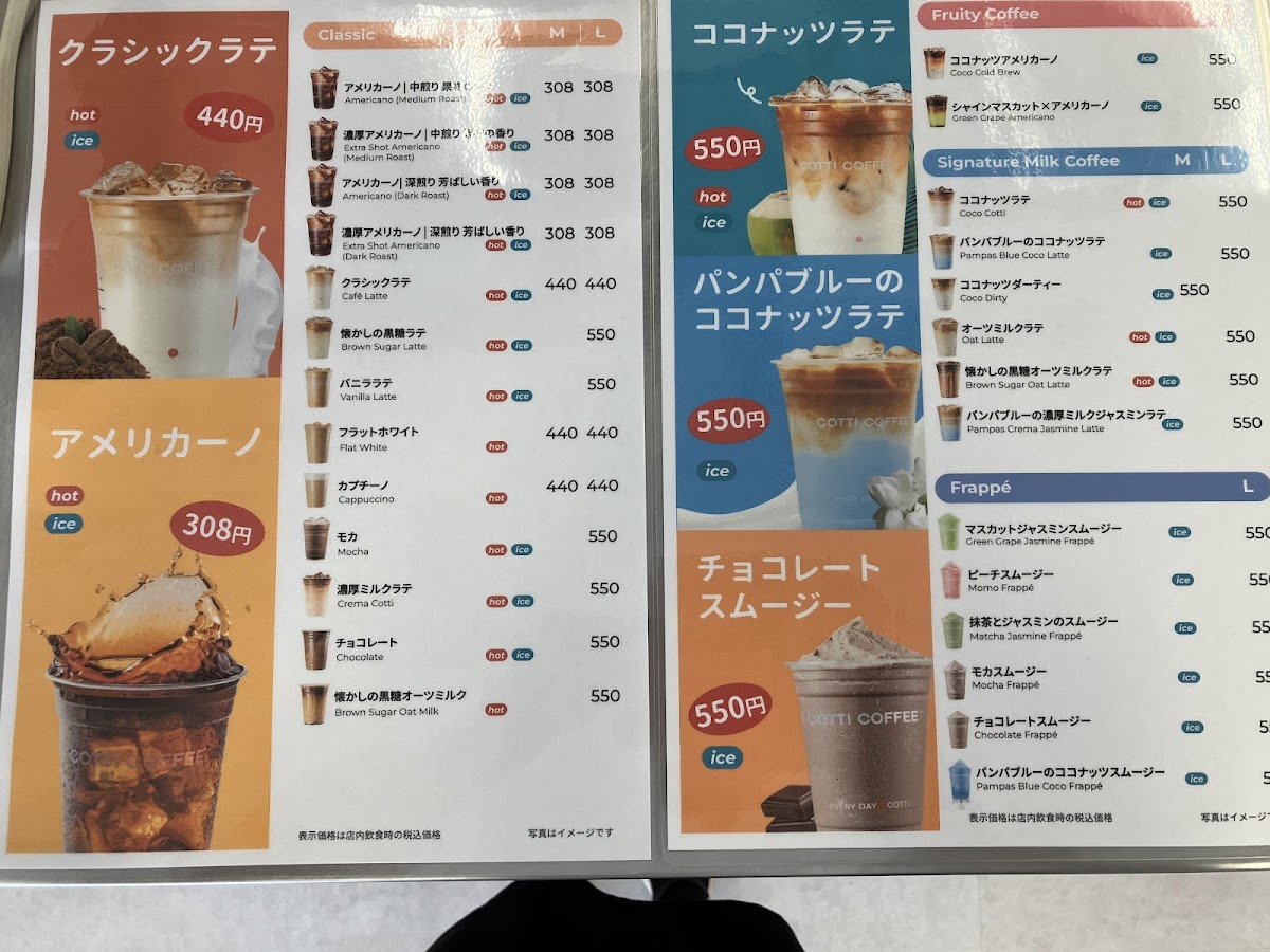 Cotti Coffee’s drink menu offers a solid variety of options with flexibility in sweetness levels, appealing to those who like to customize their beverage. Locals appreciate the generous serving sizes, particularly the larger 16oz drinks, which deliver good value compared to other notable coffee chains. Prices typically range around 500-550 yen for medium to large sizes, striking a balance between affordability and quality.